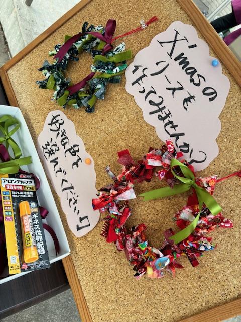 地域の方やボランティアさん、よろず庵のご利用者様など多くの方が参加され、よろず庵であいで収穫したサツマイモを使った手作りスイートポテトを食べながらお話をしたり、クリスマスリース作りを行い交流を深めることができました😊